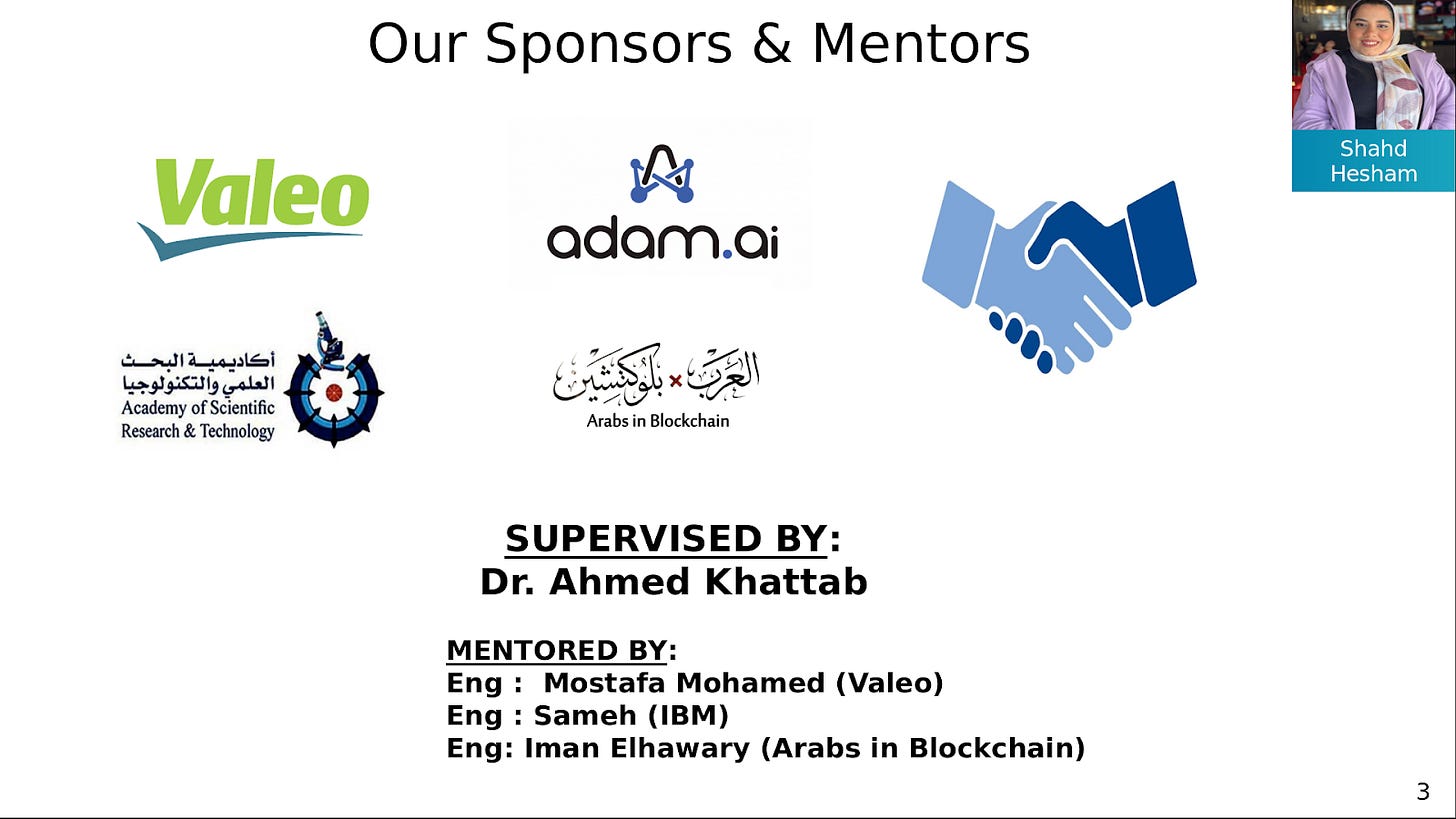 وفى فبراير 2021، أطلقنا مبادرة لدعم الطلبة المهتمين بتقنية البلوكتشين ، من خلال تقديم برنامج توجيهي للطلبة العرب الذين يعملون على مشاريع تخرج وأبحاث في تقنية البلوكتشين. من خلال هذا البرنامج استطعنا مساعدة فريقين أحدهم من جامعة القاهرة ، واﻻخر من جامعة المنيا.