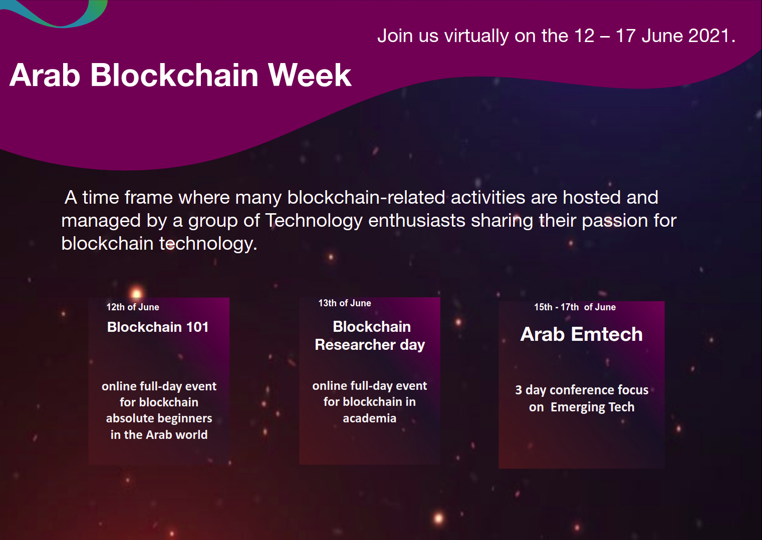 يوم باحثي البلوكتشين: يوم كامل يسلط الضوء على الموضوعات المتعلقة بالبحث العلمى فى مجال البلوكتشين ويستضيف نخب عربيه وعالمية بهدف ربط العالم العربي بالعالم .
